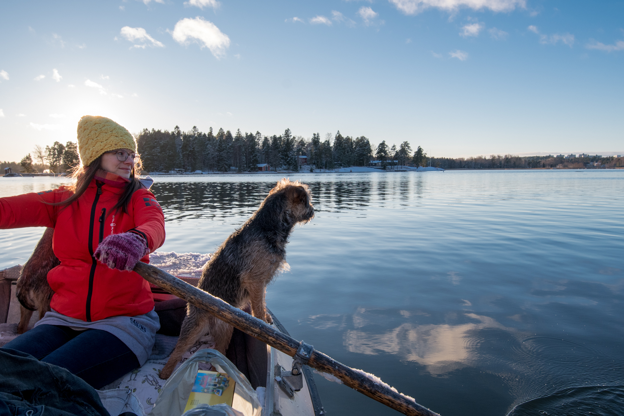 Muutimme vihdoin takaisin kotiin itsenäisyyspäivänä. Saaristo oli järjestänyt meille parikin yllätystä, joista ensimmäinen oli upea auringonpaiste! Aurinko paistoi aivan täydeltä terältä kirkkaan sinisellä taivaalla. Päivä oli jo iltapäivän puolella, joten tiesimme, että auringosta pääsee nauttimaan enää vain hetken.