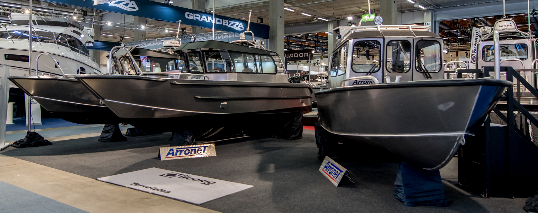 Talvella huomasimme Arronetin uutuudeen ruotsalaisissa venelehdissä. Pieni alumiinihyttivene, jota esiteltiin kannessa sanoilla ”Prisbomb från Arronet”, kiinnosti meitä kovasti. Niinpä marssimme aika lailla suoraan Arronetin osastolle katsomaan miltä 5,76m pitkä hyttivene näyttää.